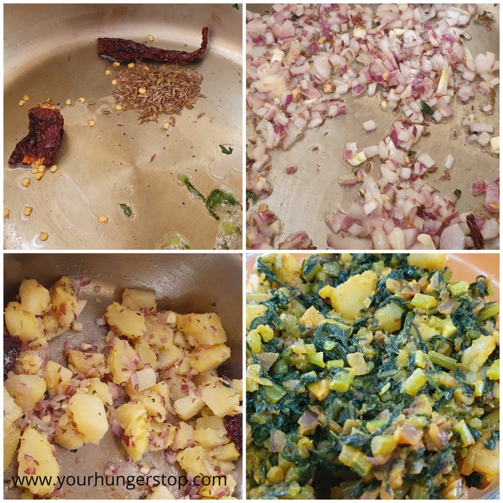 Here is the step by step recipe for Potato and Radish Leaves Sabzi with pictures: