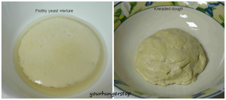 - Cover the bowl with a moist cloth and keep it aside for it to froth. Once it froths you know that the yeast has become active. (Look at the picture below) . I kept it for around 20 minutes for it to froth.
